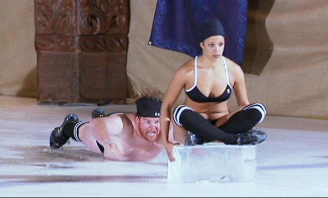 During The Duel 2, the cast was treated with the opportunity to live a day in the life of a hockey puck. Women got to sit on huge blocks of ice while the men had the privilege of pushing them.