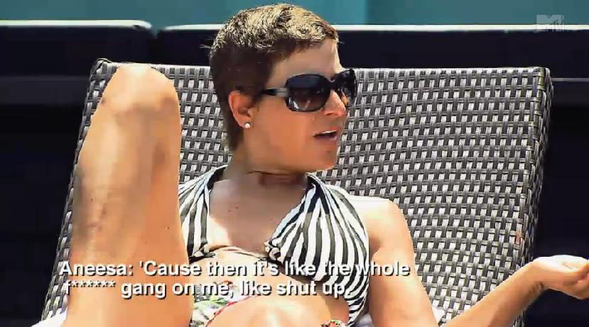 While lounging around outside, Diem notices Aneesa in the pool and wants her to do some laps to train for the final. Aneesa refuses, and the two ladies start to express frustrations with their partner. Diem feels that Aneesa lacks motivation and is concerned that she will not be able to do well in a final challenge. Aneesa feels that Diem is always commanding her to train when she doesn’t want to. These frustrations boil over into difficulties with communication.