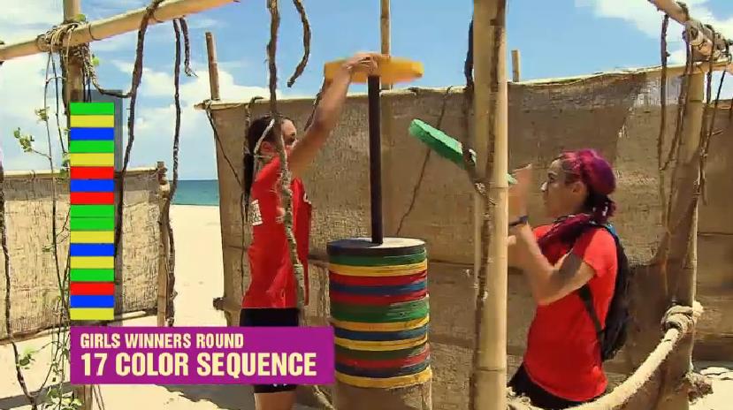 This week’s challenge was named True Colors but it was really just extreme Simon. Only the girls competed, because the 3 remaining male teams are already in the Jungle. The teams had to run a mile on the beach to memorize a color pattern, then run a mile back and regurgitate that pattern using plates. The slowest team went into the Jungle and the fastest 2 teams competed in a championship round to determine the winner. Cooke and Cara Maria won both rounds, securing a spot in the final, while Diem and Aneesa came in dead last securing a spot in the last Jungle, which is also their first Jungle of the season.