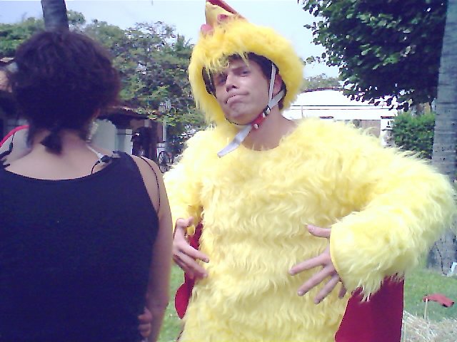 On The Inferno the cast was required to wear chicken suits for a challenge. A big chicken costume + running + Mexican heat= sweating and humor.