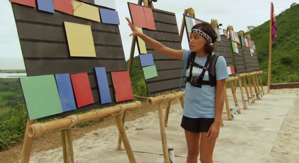 This challenge is definitely one of the toughest. The guys had to lift 300 pounds to reveal and answer key, and even more difficult the girls had to remember it and recreate the puzzle at the top of a mountain. Because most girls can’t remember anything, the teams has to take many, many trips up and down the mountain.