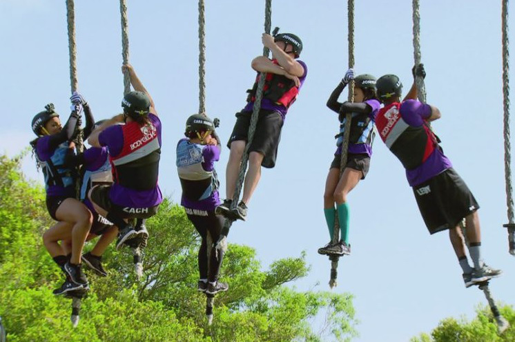 This challenge required the cast to move across hanging ropes like ants climbing a hill. Once you got into position on a rope, you have to physically transport humans to the other side. Needless to say, many of the cast members failed at this one.