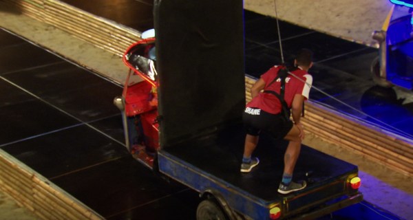 TJ welcomes the cast to The Fortress which is where all the eliminations will take place and the whole cast gets to watch them now. This elimination is called Tuk Tuk Bang Bang. The competitors stand on the back of a tuk tuk, a Thai chariot used to transportation, and must bang the tuk tuk forward using the weight of their body until they reach a finish line. The girls go first, and Sylvia manages to get the rhythm before Kailah does, so Sylvia wins. For the guys, Shane uses physics to position where he will bang the tuk tuk. This proves to be the right strategy because he gets to the finish line before Tony and wins.