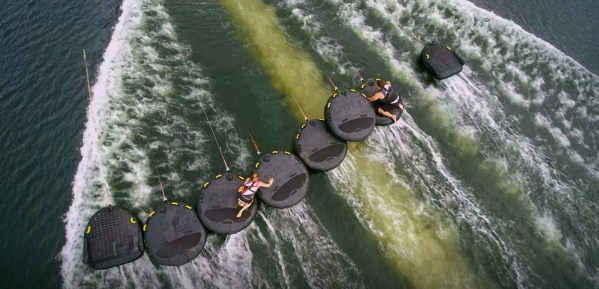 Camila and Bananas crawling across inner tubers: