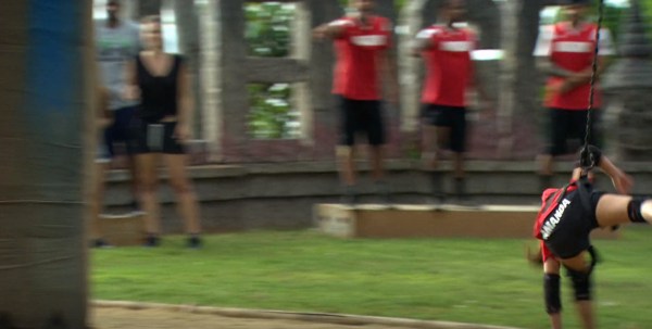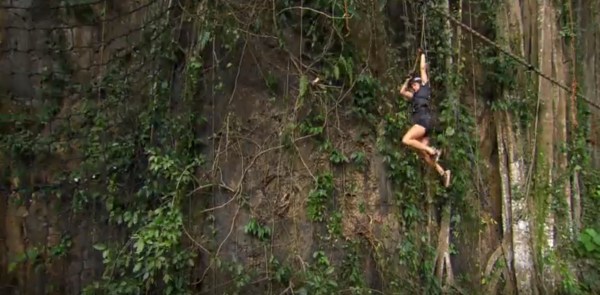 Jenna falling off of a ropes course: