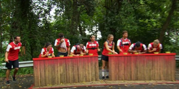Nicole, Jenna, and Amanda in some type of challenge: