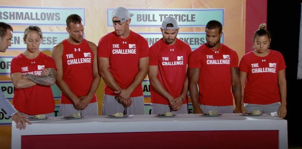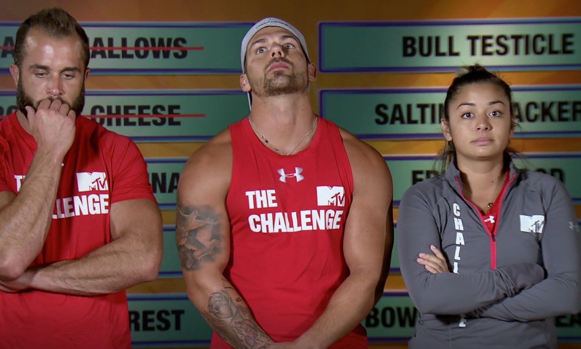 The next challenge is called Food Wars and it’s an eating contest/ trivia battle. Melissa uses her grenade to pick the teams, and Bananas gets the first trivia question right. So, he saves Leroy’s team and all the remaining teams have to eat a plate of smelly cheese in under five minutes. Tony is the only competitor to complete the cheese, so five teams are eliminated right away. Bananas gets the second question right, and Tony and Leroy have to race to complete a plate of Marshmellows. Once again, Tony wins. The final round is a maynaise eating contest. Cara Maria represents her team (her, Bananas, Kayleigh) while Tony represents his team (Tony, Zach, Marie). Once again, Tony wins the round. His team is now the Troika!