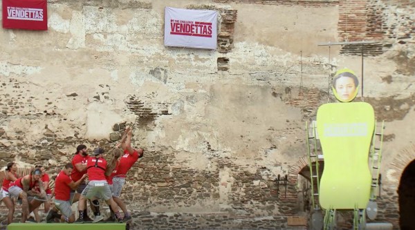The next challenge begins with a good amount of surprises. Sylvia is out of the competition, she has been sick for over a week and is unable to continue. We are about to embark on a “double elimination” so competitors need to prepare for both a male and female pairing to go into The Ring. The challenge will divide the competitors into two teams, and because Brad won a grenade, he is able to give a one minute time penalty to Kam, and her entire team will begin a minute later.