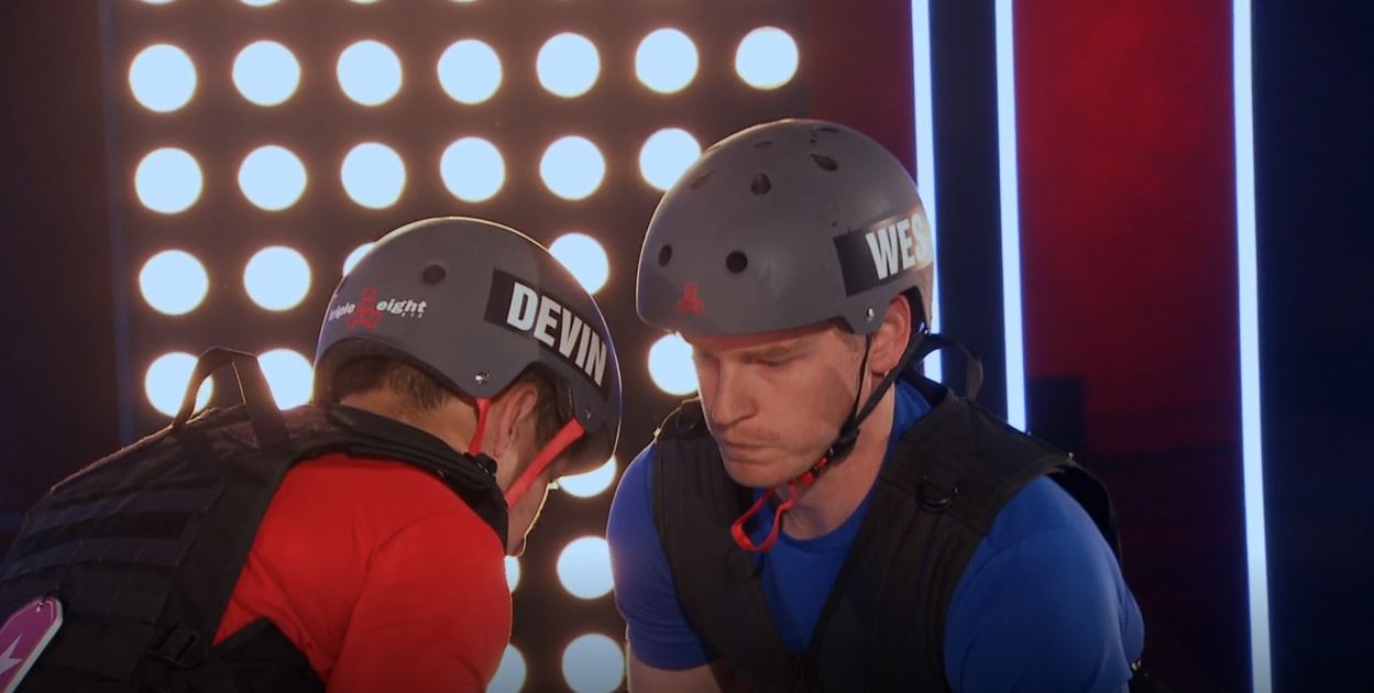 The Elimination: Poppin’ Tags– Wes vs. Devin. The goal is to wrestle your opponent and retrieve a tag attached to the back of his harness. Best 3 out of 5 wins. Wes takes the victory.