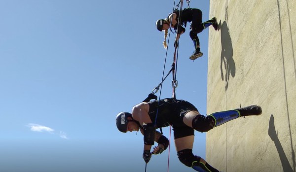 The Challenge is named What Goes Up, Must Come Down. The race is played in three stages. First, the teams climb flights of stairs to the roof of a building. Second, one player is suspended over the edge of the building and relays an answer key to their teammate who assembles the puzzle. Then, the two teammates race down the side of the building. The females are significantly slower, so the competition comes down to Shane & Nelson or Bananas & Tony. The Lavender Ladies try to heckle Bananas as he tells Tony the answers to the puzzle, but their heckling fails. Bananas & Tony win the challenge and get the power vote.