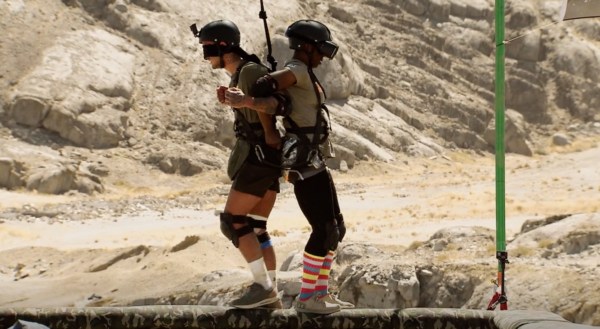 This week’s challenge forces competitors to face some of their biggest fears. In Eye in the Sky players are harness back to back and must walk around four beams suspended in the air. The catch? The forward player is blindfolded with a camera on their helmet. The backwards player is wearing VR goggles that stream player one’s helmet cam. This means the backwards player is the eyes, and this freaks a lot of players out. Wes & Dee manage to get through this elimination quickly, setting the pace for later teams. This motivates Bear & Da’Vonne, even though they’re safe due to the Relic. These two teams make the Tribunal, joined by Jenna & Gus who posted an impressive time thanks to an impressive jump at the end.