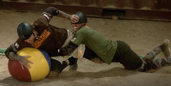 The challenge is named Fandemonium and TJ brought out his hurricane fans for this one. Each competitor has five minutes to run up a hallway and deposit as many balls as possible into the specified area. The catch? They’re running toward the hurricane fans the produce winds up to 120 miles per hour. This simulates a category 4 hurricane. Even though they have ten total balls, no one gets them all. Multiple competitors find themselves struggling to breathe and Turbo has to see a medic. This proves to be worthwhile, as Turbo, Paulie and Theo all deposit seven balls the fastest and make the Tribunal. It’s a guy’s elimination so the girls are safe, but Bear is upset he didn’t win. He brought eight balls up the hall but two were deposited in the wrong area and his total score is only six.