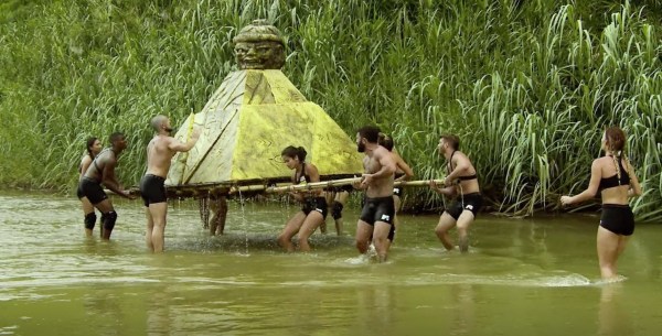 This week’s challenge is called Resilient River Run and the teams need to transport relics across a river. The catch? These relics are sacred and must be carried by the team atop a giant pyramid puzzle on a stretcher. The puzzle is not the most secure, so balance is required. Plus, there are two relics to this means there will be two trips required. Team US assembles the puzzle first, start to carry their puzzle down the river. Some of the girls run ahead of the stretcher to inform the team of surface changes in the river. Ashley uses her cheerleading skills to convey information well while Ninja fails to deliver instructions. Instead, she gets in Zach’s way and frustrates the team. Ultimately, Team US takes the lead and despite fumbling near the end they pull out another win.