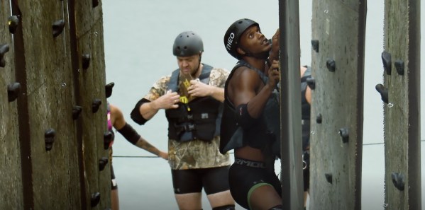 This week teams are playing Temple Wall Traverse. TJ announces the cast will need to climb across a series of climbing walls and Ninja says “cool.” Their goal is to hang up tiles on their corresponding hooks. Meanwhile, the opposing team is pedaling away to make the walls move, making traversing across platforms increasingly difficult. The team who hangs the most tiles the fastest wins. Team US goes first and sends their stronger climbers like Jordan and Ninja to go first. They hang a few tiles, but fall eventually. The rest of the cast goes with varying success, but they only get about half of their tiles hung. Then, UK goes. Their run begins with Rogan falling and taking Tori with him. This sets a dismal tone, and the rest of the team struggles. Theo and Jenny get a couple of tiles hung while Kayleigh and Dee stay on the platforms waiting for time to end. US win, as the UK on gets a couple of tiles hung. Paulie becomes speaker and picks Cara Maria and Josh to be in the Tribunal.
