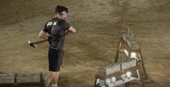 At the Proving Ground, Zach votes for Joss knowing it’s a burn vote. Then Paulie votes for Jordan, then Cara Maria votes for Josh. Cara’s just kidding though, she really votes for Jordan, so we’re seeing Jordan vs. Theo in a game called Under the Hammer. This game gives competitors a series of 12 nails and they must use a sledgehammer to drive the nails through a board. Beneath the board are lightbulbs and the nails must break the bulbs. Theo gets an early lead, to the surprise of most people. Jordan has a background working construction, and that background catches up with him. Theo proves less accurate with his swings and Jordan quickly takes the lead over Theo. In the end, Jordan wins and ends Theo’s winning streak.