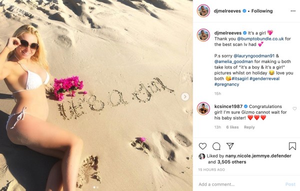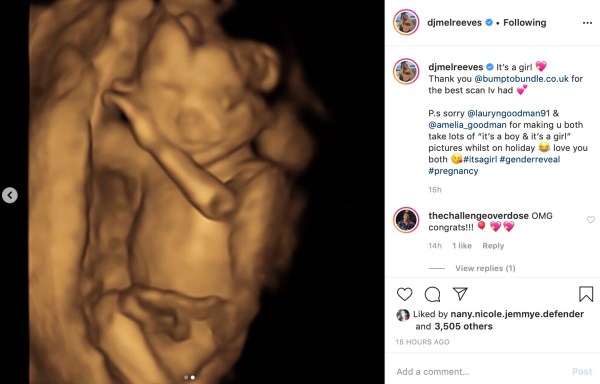 Melissa Reeves, star of The Challenge and Ex on the Beach UK, took to social media to announce she’s pregnant. She has stated her “mini me” is coming later in 2020!