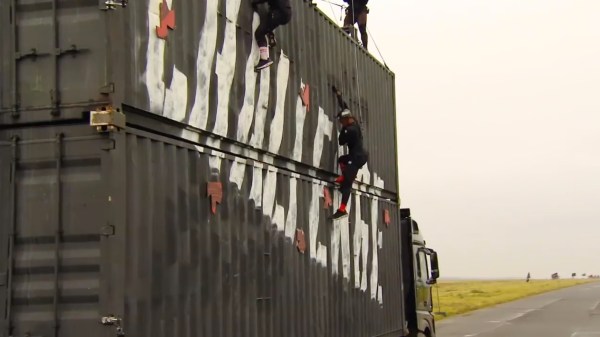 An obstacle course on a moving truck.