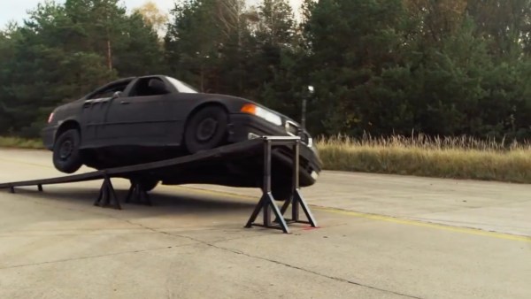 The car gliding into barrels.