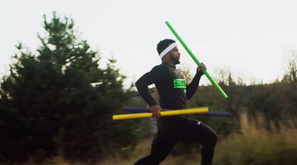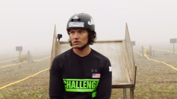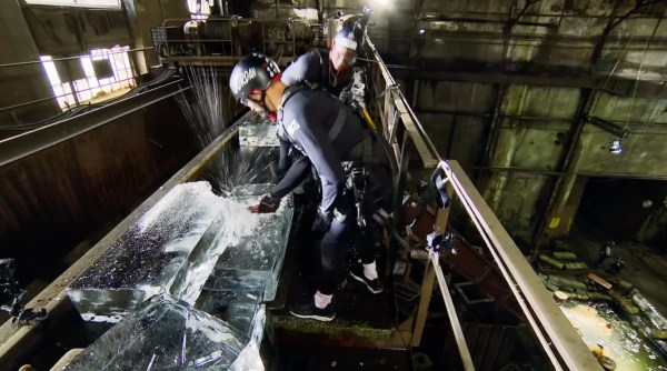 Jordan banging through glass in a challenge.