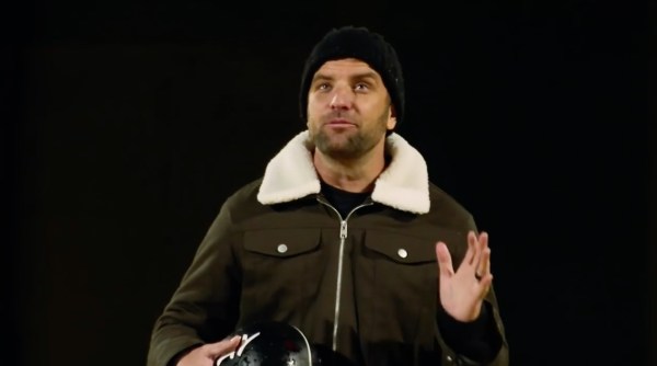 Fessy swinging off a moving car.