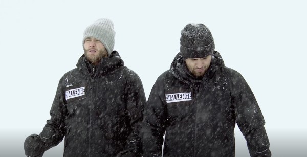 The elimination is called Knock Out, but before we can see the competition, we Melissa quits. She’s been feeling sad, cold, achy, pregnant, and exhausted all day so she feels unfit to compete. So we just see Bananas against Rogan. The game forces the competitors to start at barrels and race toward the center. Then, they jump and ring a bell. First person to do it twice wins, but the snow is deep and the bell is high. Neither guy hits the bell on his first jump, but after a couple of rebounds, Bananas rings it. Rogan swears he’ll make a comeback in round two, but Bananas gets it on his first jump and eliminates Rogan.