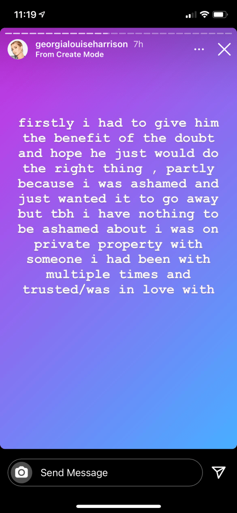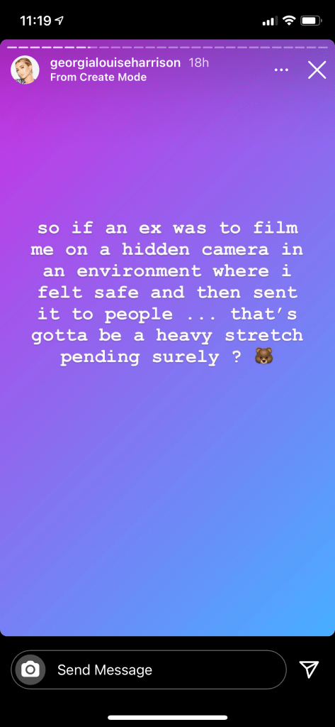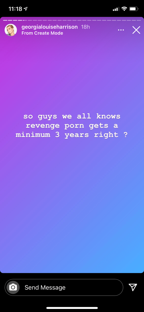 After these stories were shared, fans messaged Georgia stating that Bear were offering to share the video on his only fans. Georgia also posted that revenge porn can get up to 3 years in jail.