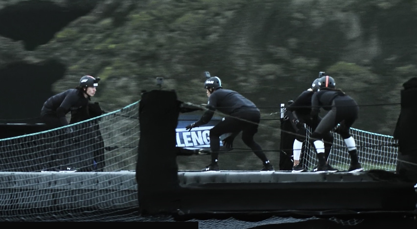 This week’s challenge is called Road Kill, and it’s the challenge on top of a moving truck. The teams have to wrestle each other on a platform and push their opponent off. The agent who lasts the longest wins. Match ups are selected randomly and we start with Devin & Nicole against Kyle & Kam. Neither competitor gets their opponent off, but Kam does manage to dislocate Nicole’s shoulder. We see other competitors wrestle, but very few people stay on the wrestling platform without their opponent dragging them off. This makes the competitions dependent upon whose foot last touched the platform. The team who gets both of their opponents off the platform the fastest is Leroy & Kaycee who knock off Nelson & Amber M.