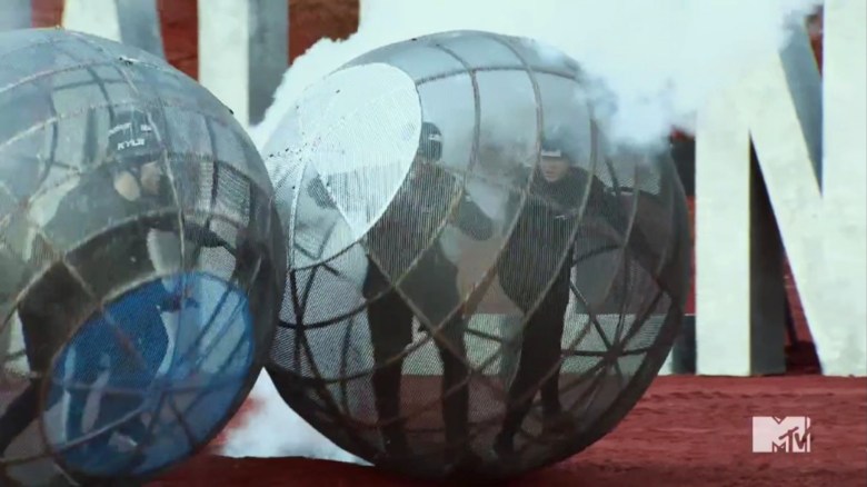 This week’s Challenge is called Mission: Global Domination. The teams are in big metal balls, and the goal is to roll over as many targets as possible. There are two heats, and in each heat three teams play offense and two teams are defense. The defense will try to push players away from targets. Because they were the Double Agents last week, Kaycee & Leroy get to choos the order. They also get to play offense twice because there’s an odd number of teams. As an added bonus, the better of their two scores will count. In the first round, Amber B. & Kyle and Cory & Kam are defense. They’re trying to spread up the time defending teams, but Kam refuses to go against Leroy. When TJ blows the final horn, Fessy & Nany have the most targets collected. In the second round, CT & Big T and Fessy & Nany are defense. This time, CT & Big T are sitting on Kam & Cory, but this means Leroy & Kaycee have a clear path. For Kam, that’s a success. In the end Leroy & Kaycee get the win.