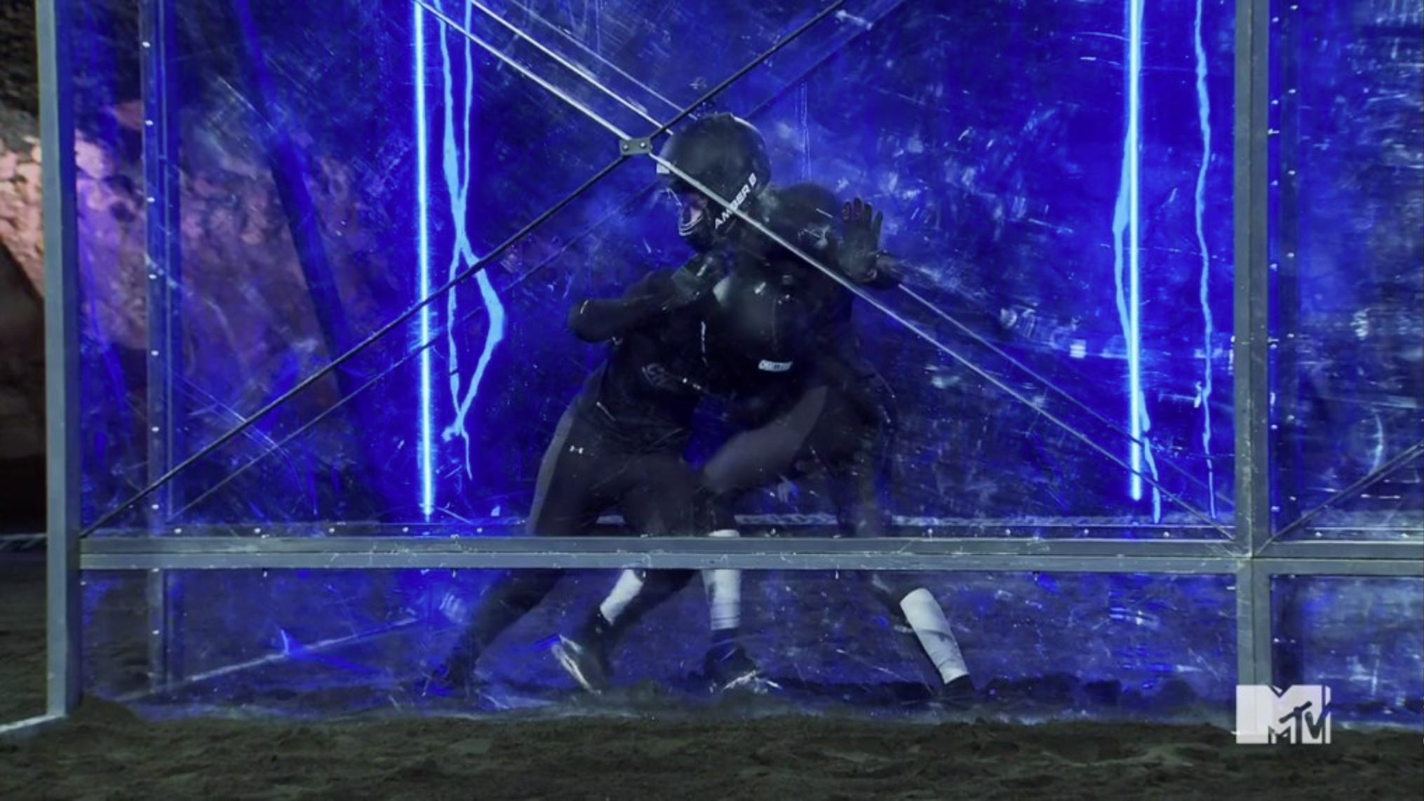 The cast walks down to elimination, and they see a hall. This means HALL BRAWL. The Double Agents call down Big T & CT. It’s a female elimination, and CT has been training Big T. However, Amber B. has won this elimination before. Best out of two wins, and the first round goes to Amber but she had a hard time pushing past Big T. In the second heat, Big T puts up a bigger fight. Sadly, it’s not enough. Amber pulls out the win.
