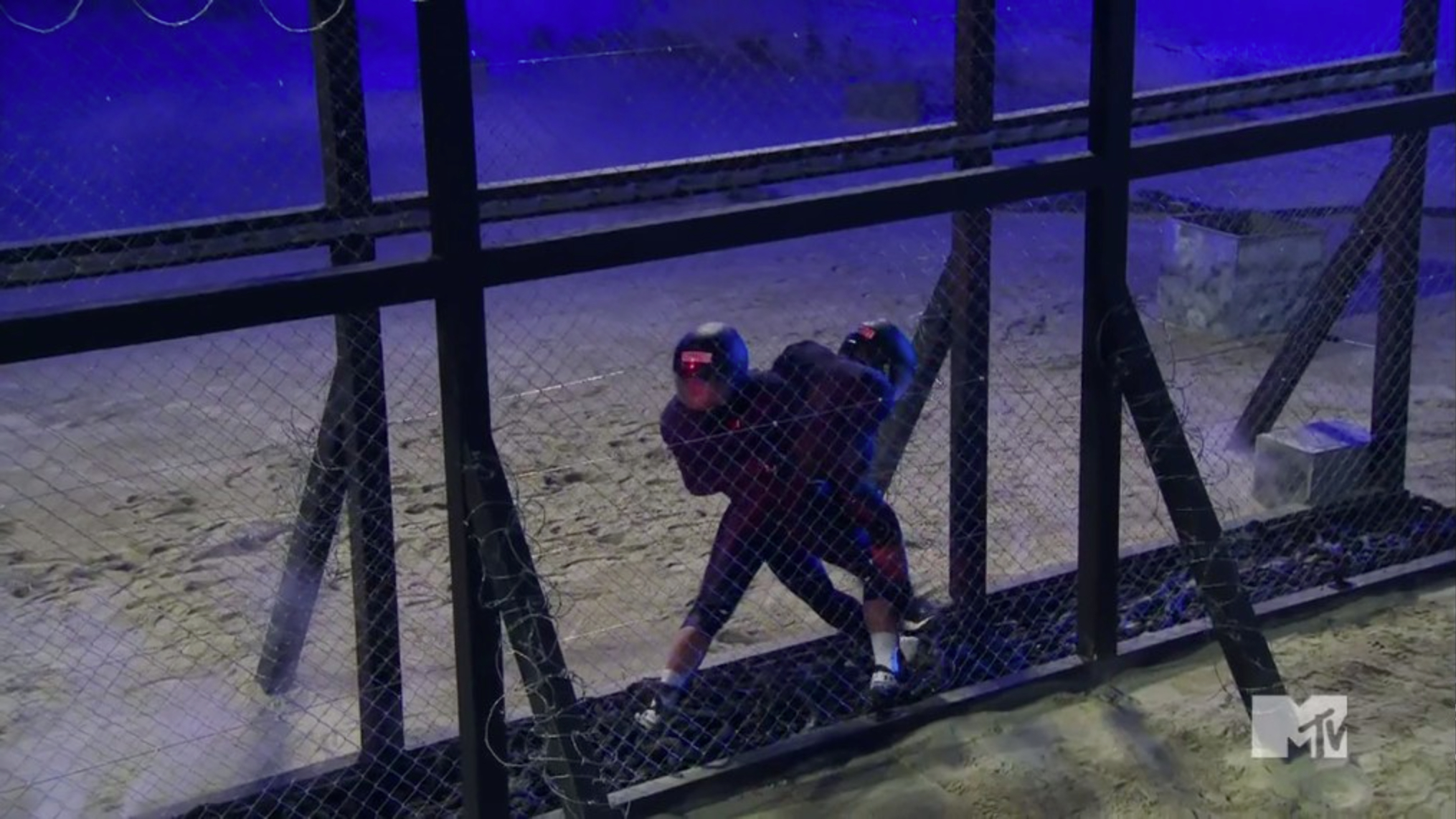 The cast walks into The Lair and we see a hall. This can only mean one thing: Hall Brawl. Emy gets sent in to compete with Esther, but the elimination is called Rage Cage. It’s Hall Brawl, but with fencing instead of plexiglass and rope on the ground. First person to ring the bell twice wins. In the first heat, Esther grabs onto Emy. She tries to pull her down, but this puts Esther in the defensive position. Eventually, Esther tires out and Emy wins the heat. The second heat is much quicker, and Emy rings the bell. Now, Esther is going home but she doesn’t leave without telling Amber she’s fake.