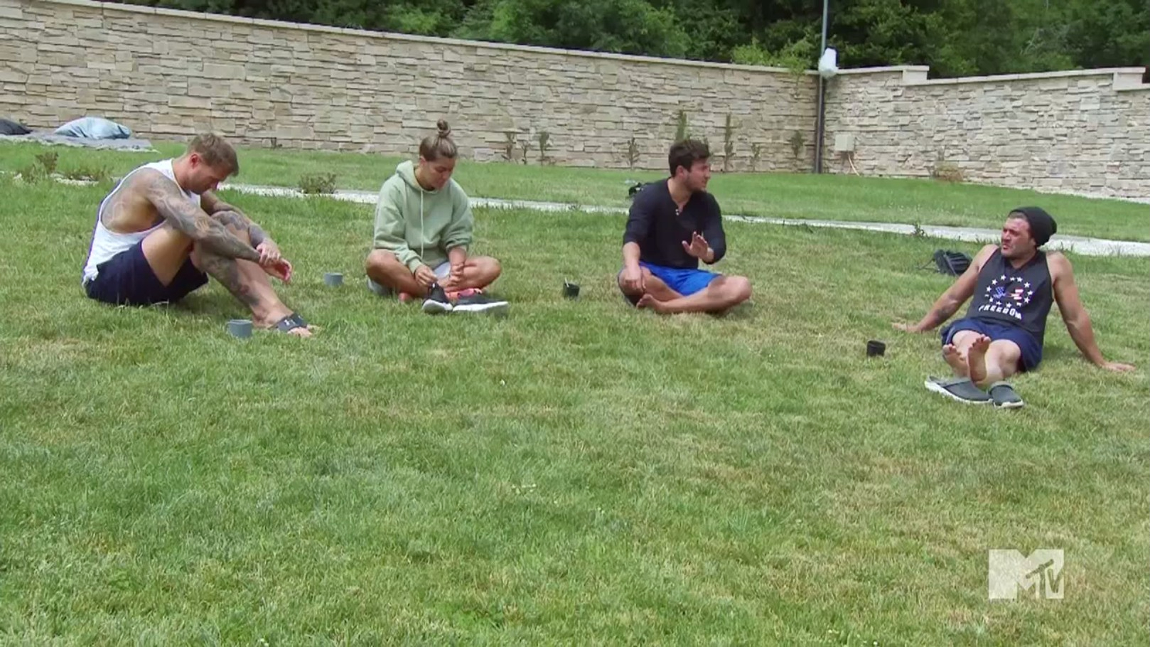 This week we’re watching the Challengers compete in Bombshell Battle. Each team has a color, and they must alternate to retrieve four “bombs” (AKA dyed soccer balls). Then, they deposit their balls in their “detonation station.” After the five balls, there are silver bombs to deposit. The first five teams to get their silver bomb advances to round two. In the first heat, some teams play smart and throw all their balls near their detonation station. Kaycee & Emanuel, Nelson & Big T, Devin & Amber and Logan & Nany. This leaves one ball left, and it becomes a fight. Josh gets a hold of the ball at one point, but everyone piles on top of him. Soon, Cory is in the dog pile with the ball. Rather than fight for it, he tosses it toward Jeremiah. Josh notices this move, and this confirms that Cory and Jeremiah are working together. However, Jeremiah doesn’t even get the final ball into his detonation station. Kyle snags the ball then tosses it to Ed, so Ed & Ashley get to advance.