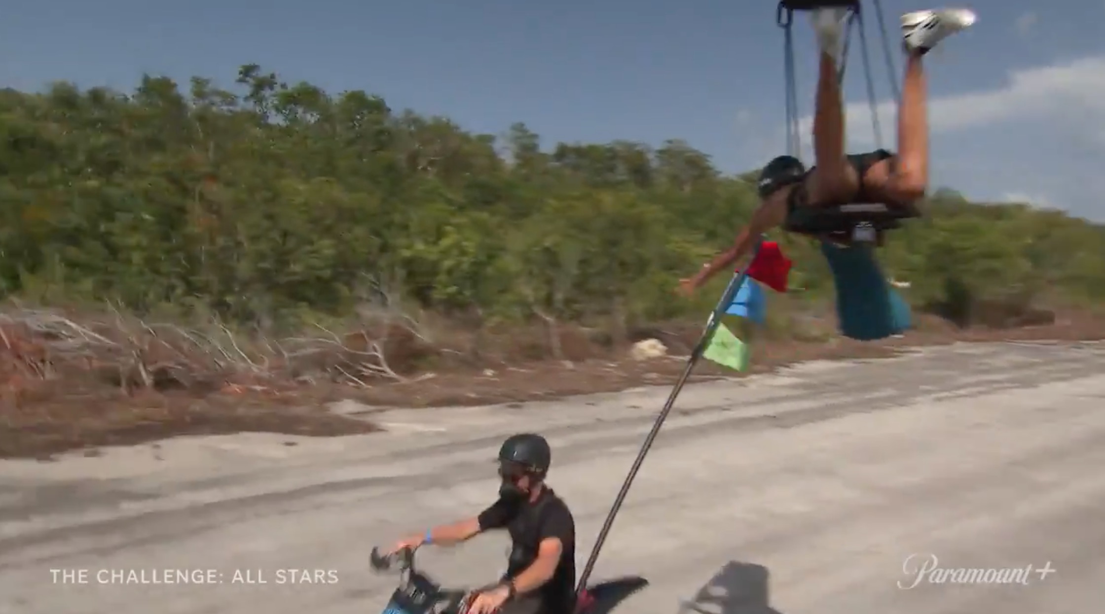 And she needs to grab flags