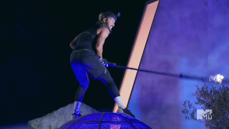 In The Lair, Cory takes the chance to thank Nelson for all of his help in the game. Nelly T. is safe this week. Of course, Cory knows Josh is protecting the rookie, so he’s calling down Logan. They’re playing the game Rope Burn, and competitors are shaking a rope while standing on top of a cage. To score a point, get the rope out of your opponent’s hands or get your opponent off his cage. Score two points and you win. Of course, the rope is on fire because why not? In the first heat, Cory tries to get Logan to tire out. On the other side, Logan uses strategy. He waits for Cory to attack. After this, he takes advantage of Cory’s instability and tries to get him to fall. Cory stumbles a few times, but Logan eventually knocks him off his platform. Both men return to the second heat exhausted. They pull, but they also take breaks. Cory pauses to rest his hand, and a burst of energy comes over Logan. He pulls Cory off the platform and wins.