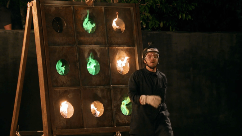 The elimination is called Fireballs, and it’s just Tic Tac Toe. The catch: the balls are on fire. This worked much better than Balls of Fire on Vendettas or Fire Ball on Total Madness. But, it did cause some complications for Sophia when Jodi dropped her ball. Ultimately, Cohutta and Jodi win and Ryan and Sophia are sent home.