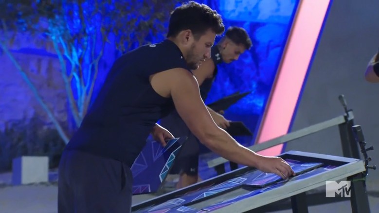 Emanuel and Devin are playing Triple Threat, and it’s a series of three “mind-bending” puzzles. The first has six colors on a 6×6 grid. The goal is to rearrange the pieces so every row and column has no repeating colors. Somehow, Emanuel solves it much faster than Devin and takes the lead. The second puzzle has the numbers 1-9 in a 3×3 grid. The goal is to arrange the numbers so all rows, columns, and diagonals have the same sum. Emanuel doesn’t know the answer, but Tori starts to help him. This pisses off the veterans even more. Soon, Devin completes his first puzzle and speeds through the second because he’s seen it before (maybe on Puzzle Pyramid on Free Agents or the Bloodlines final). He knows the goal is to add to 15, then Tori spills the beans to Emanuel. Now, Devin is on the third puzzle, and it’s a bit of a kaleidoscope. The pieces have halves of diamonds in four colors, and the goal is to make solid diamonds in the center. Devin finds it confusing, and Emanuel joins him at this stage. Now, it’s a race. Both men solve the puzzle to a point where they’re only off by one piece. Then, Devin sees his flaw. He takes the win and sends Emanuel home. It’s confirmed, the eight remaining players are in the final.
