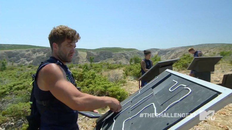 After the jump into the water, the final looks like missions we’ve seen before. Instead of swimming, the cast uses wave-riders to get through the water. Then, they run through rocks and mountains and solve a puzzle. Nelson arrives at this puzzle first, but many competitors are stumped. Devin is the only one who solves it quickly, and he races to discover that players are joining “cells.” So the whole first leg of the final was simply an effort to form cells. Devin, CT, Tori, and Emy are the purple cell while Kyle, Nelson, Nany, and Kaycee make the orange cell.