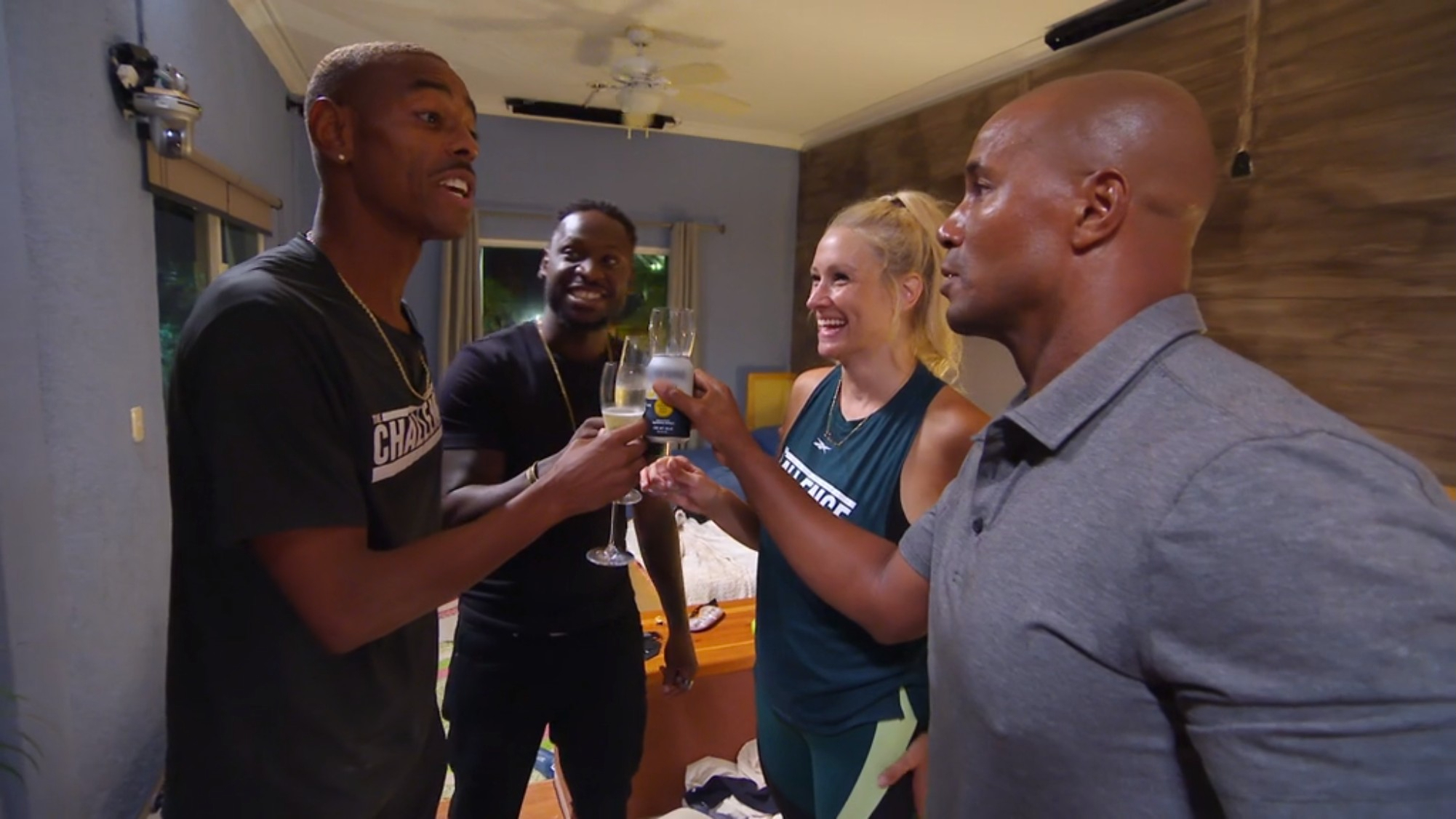 Laterrian and Nehemiah join Melinda and Teck as they celebrate victories in The Arena. As they have a toast, Brad comes to an epiphany that he is no longer working with his friend Nehemiah. Is this a surprise? It shouldn’t be. They’ve done three seasons together. On The Duel, Nehemiah’s underdog alliance was targeting Brad’s old-schooler alliance. On The Gauntlet 3, they were on opposite teams, but Brad had no allegiance to the Austin alliance. On Duel 2, Brad kept Nehemiah low in the pecking order. Now, tables have turned.