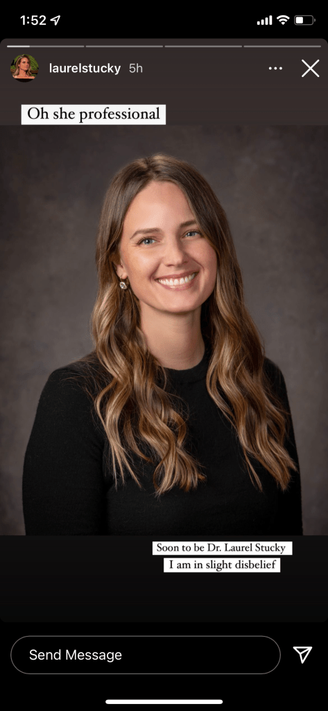 This is a huge accomplishment. It might mean Laurel won’t be back on MTV, but she pursued a passion. I’m so impressed with her commitment, and have no doubt she will excel at this rewarding career.