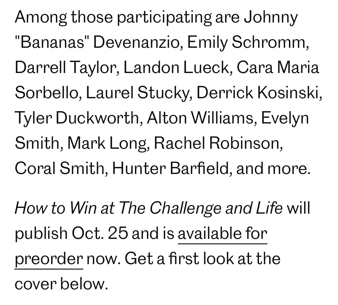 A new book might put these people on the right track. MTV Book is planning to publish How to Win at “The Challenge” and Life: A Champion’s Guide by Sydney Bucksbaum.