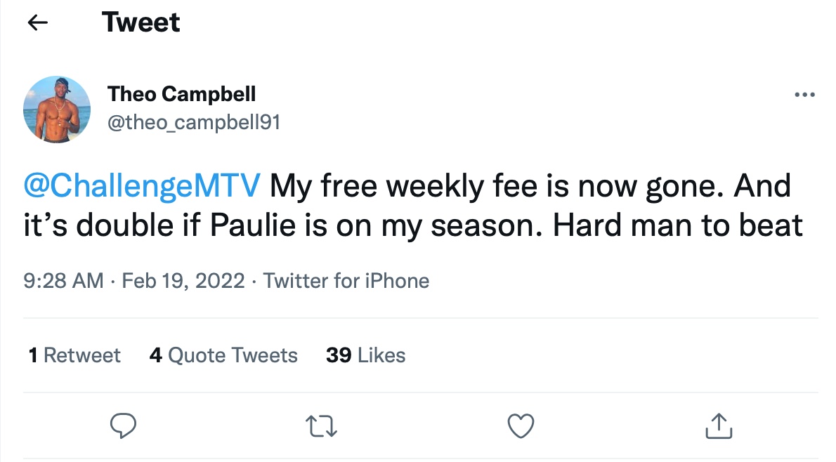 Theo Campbell is tweeting at the official Challenge page asking to return.
