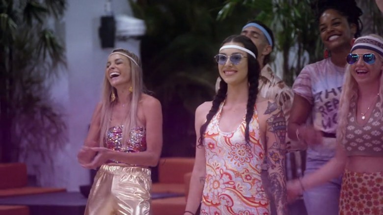 The cast throws a 70s party, which is a nice throwback to the 90’s party on All Stars 1. Nia is hidden in the background wearing a tie dye MTV shirt. But as we know, MTV wasn’t around in the 70s.