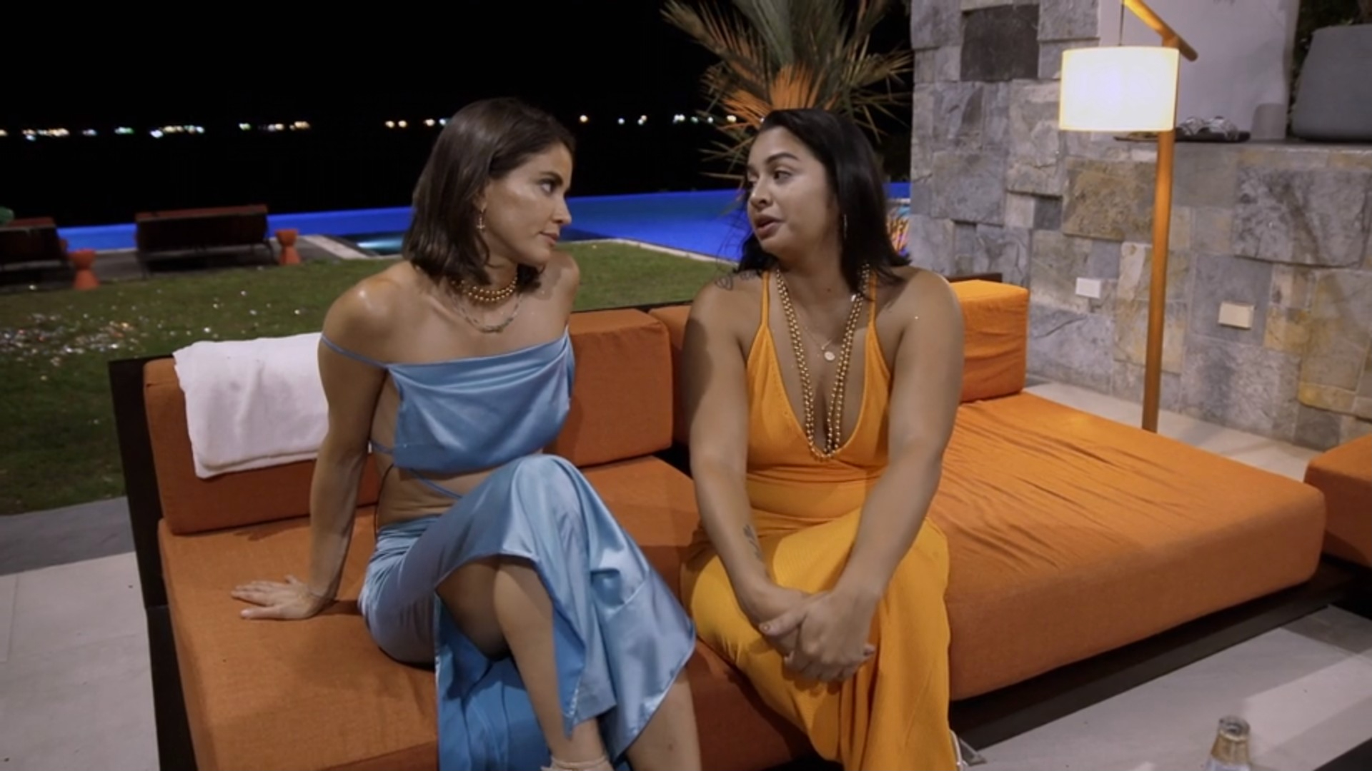 This week’s challenge is called Stacked, and seven competitors need to scratch out a code to unlock an oar. Then, five will use it to paddle and paddleboard and collect puzzle pieces. Finally, three of them will use them to solve a puzzle. This is a funnel-style challenge where competitors are reduced as the game advances, similar to Rafty Race on The Duel or Race to the Alter on Battle of the Exes.