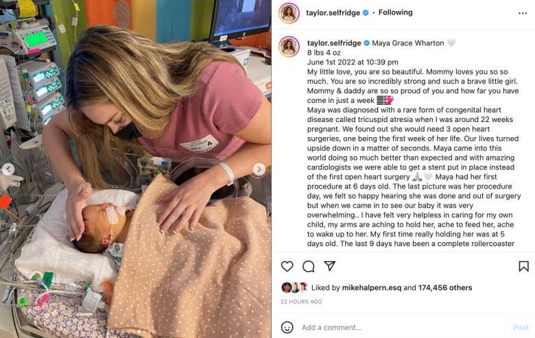 While this seems like a sad occasion, Cory and Taylor were somewhat prepared. Taylor shared that she learned of Maya’s condition when she was 22 weeks pregnant. With that information she was prepared for three open heart surgeries. But, Maya’s first procedure placed in stent instead of having open heart surgery. While still very serious, it’s less severe and demonstrates Maya is doing better than anticipated.