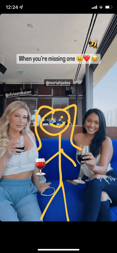 Then, we see her posting with Nurys and penciling in a stick figure of Moriah. Perhaps this is a hint that the three girls worked together, or at the very least, got along throughout the season.