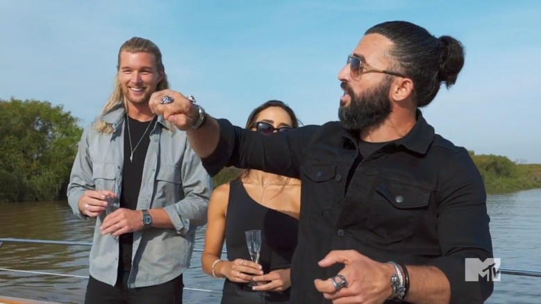 The cast sails onto the season, but as they’re popping champagne on the boat, Turbo is already starting fights. Laurel poured the bubbly, and apparently missed Turbo because he was standing behind her. This angers the Turkish champ, who decides to call out the rest of the cast. He threatens to see them in elimination, and claims he will take them out one-by-one. A big threat by someone who has never actually been into an elimination.