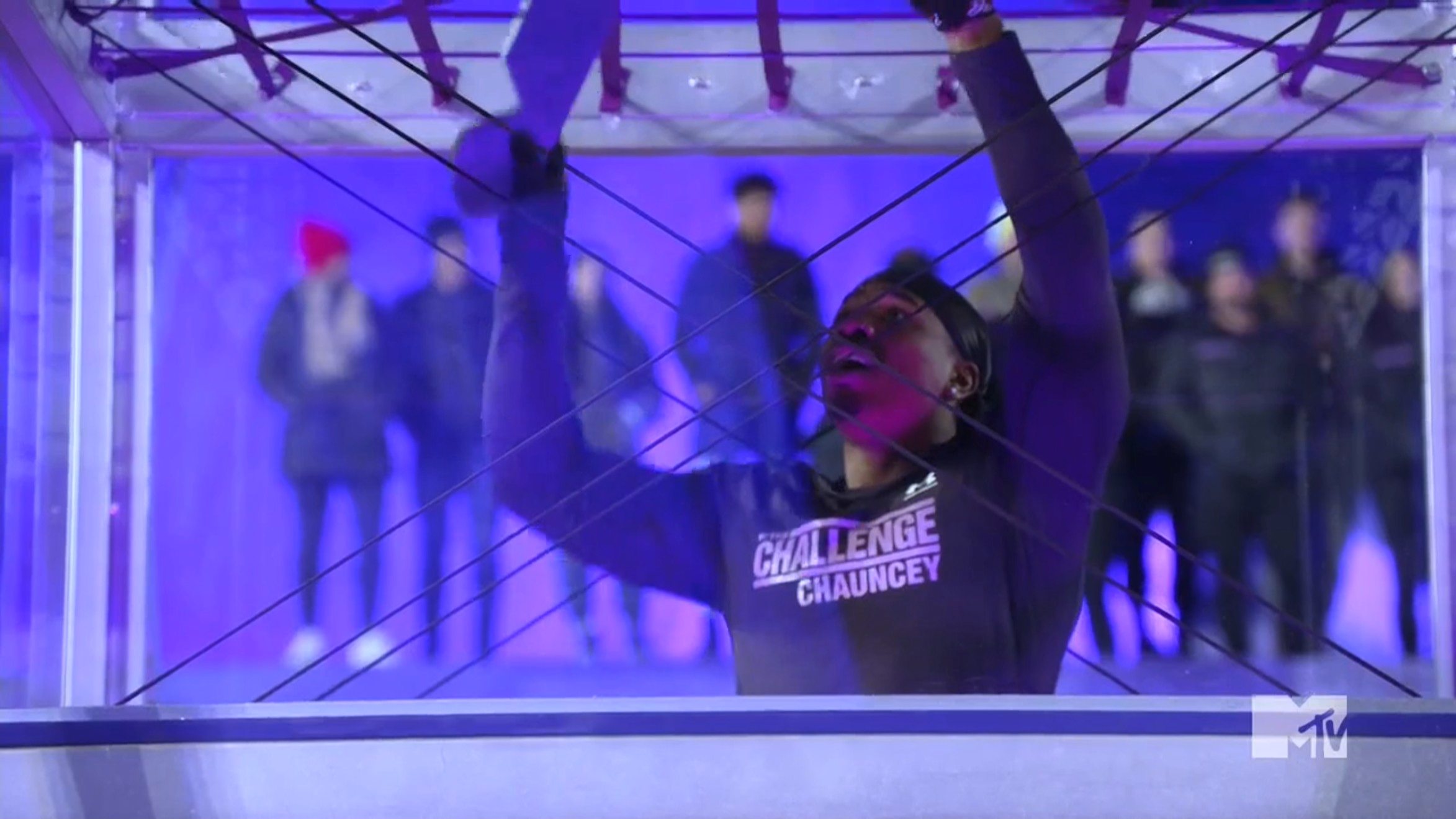 The elimination is a multilayered race where players have to climb up & down multiple floors, navigating through webbed platforms to get to the bottom. Then, they retrieve a piece at the bottom and bring it to the top, 8 pieces in all. These pieces will allow them to solve a puzzle for victory. Darrell and Chauncey get down quickly, and Amber looks like a noodle going down the webbed floors. But, Veronica has some technical difficulties because her booty is making it hard to get back up. She figures out how to move, but Amber & Chauncey have a lead. Eventually, the Road Rulers catch up at the puzzle, and Amber can’t figure out how to make the pieces fit. The spectators get bored because they’re taking so long, but eventually it clicks for Amber & Chauncey and they win.