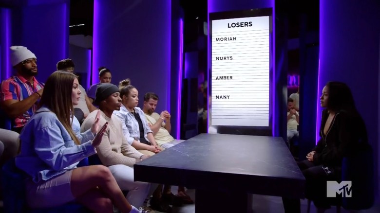 The cast gets to The Zone, and they see a rope ring and a ball with handles. They know it’s a banger, but they need to see who’ll be battling. All four losing girls receive votes, but five votes go to Nurys. At the dagger draw, Nany goes first and pulls a blank dagger. Then, Moriah pulls the safe dagger and she keeps Nany safe because she told Nany she’d keep her safe — and Nany’s lucky because she doesn’t need to go back on her word. So, Amber is facing Nurys in Pato Brawl.