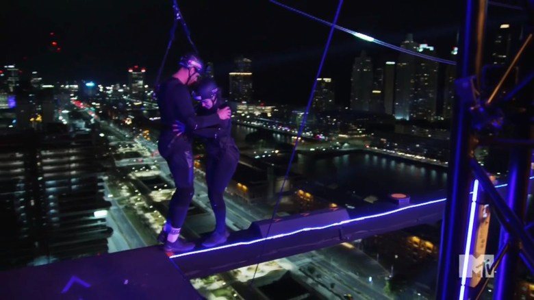 The cast shows up for the challenge, and it’s at the same high building from episode 4, but this time it’s a nighttime challenge. The game is called Takes Two to Tango, and the players need to work in pairs. They need to navigate their way across a narrow beam that’s hundreds of feet off the ground. Throughout the course duo will encounter turntables, just like the tango, they’ll need to turn around. If they can’t complete the course in 10 minutes, they’ll get yanked off. Tori & Faysal go first, they move slow, and Faysal is clumsy and awkward. Then, Aneesa and Chauncey are scheduled to go, but Chauncey is too scared to compete. He quits, which really has no repercussion on his team other than him not being able to clock a time, because the duo with the fast time wins the challenge for their whole team.