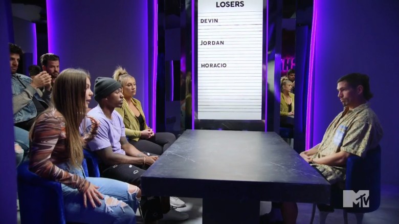 At the interrogation, there are only three names on the board. Most people are OK with not making Devin the direct vote, so they’re split between Jordan and Horacio. It feels like Tori is the swing vote, and she still feels she’s put her neck on the line for Jordan and doesn’t know how long she can stick up for him without getting anything in return. So when Jordan is being questioned, Tori airs her grievances. She never received an apology for Jordan’s “terrorist” comments, but Jordan feels she was holding her love hostage for the sake of the game. Still, Jordan maintains he’d keep Tori safe 100%, and Tori is toying with a real relationship for a make-believe game.