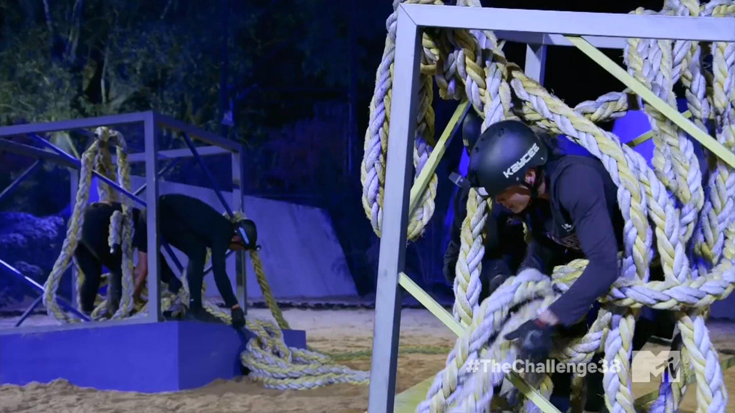 Jordan & Aneesa and Kaycee & Kenny move to the second round of the elimination, and the loser goes home for real. They’re playing a classic game: Knot So Fast. When tangling the rope, Jordan and Aneesa opt for a strategy where they both control one end of the rope, because this makes the knot harder to untie. Meanwhile, Kaycee and Kenny do things in unison. When the duos switch ropes, it’s clear Kaycee & Kenny have a bigger mess. But, they work well together while Aneesa & Jordan are slow and Aneesa’s “cooch” keeps getting in the way. But, after the initial struggle, Jordan knows that he’s only a few moves away from unraveling the whole thing. Eventually, they get Aneesa’s cooch over the hump and they get all the rope out of the cage. Jordan & Aneesa win, and Kaycee & Kenny are gone for real.